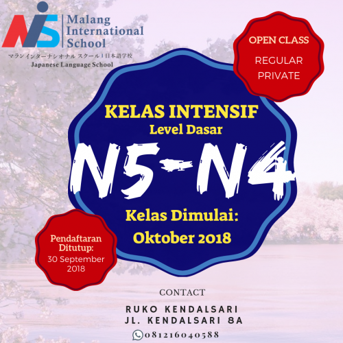 Kami membuka kelas intensif private dan reguler untuk persiapan JLPT tingkat N5-N4. Tunggu apalagi? Segera daftar dan lolos JLPT dengan MIS!